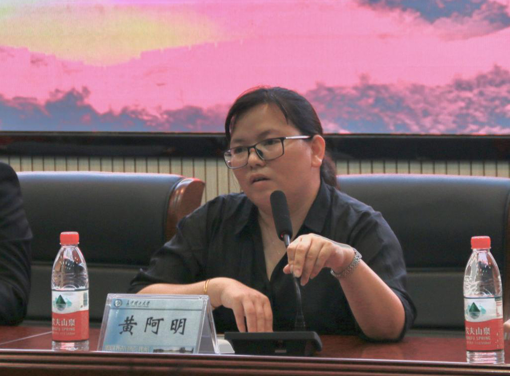 会议伊始,全体成员齐唱团歌。黄阿明首先感谢了第十二届全体学生干部为学院做出的贡献。她认为学生干部要做好老师和同学的桥梁作用,多和老师沟通;从小事做起,扎实地做事;有正确的价值观,站在他人的角度思考这三点。有了新鲜血液的加入,她相信土木学院会越来越好。