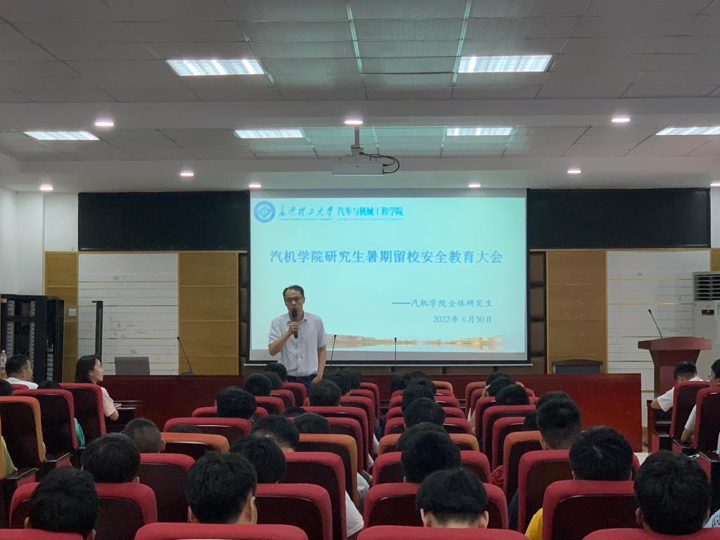 6月30日,汽机学院在云塘校区工科一号楼b417召开研究生暑期留校安全教育大会。本次会议由研究生辅导员宋新主持,党委副书记唐宏宾及全体留校研究生参加。