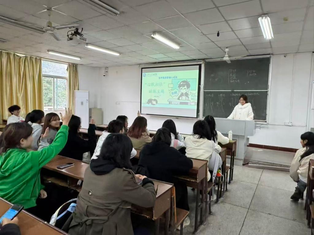 为帮助学生树立科学睡眠观念,法学院组织开展了“双十”世界精神卫生日之“心眠相依”健心班会,通过知识讲解、互动体验、方法传授等多种形式,引导学生关注睡眠健康,培养良好作息习惯,本次班会由各班心理委员主持。