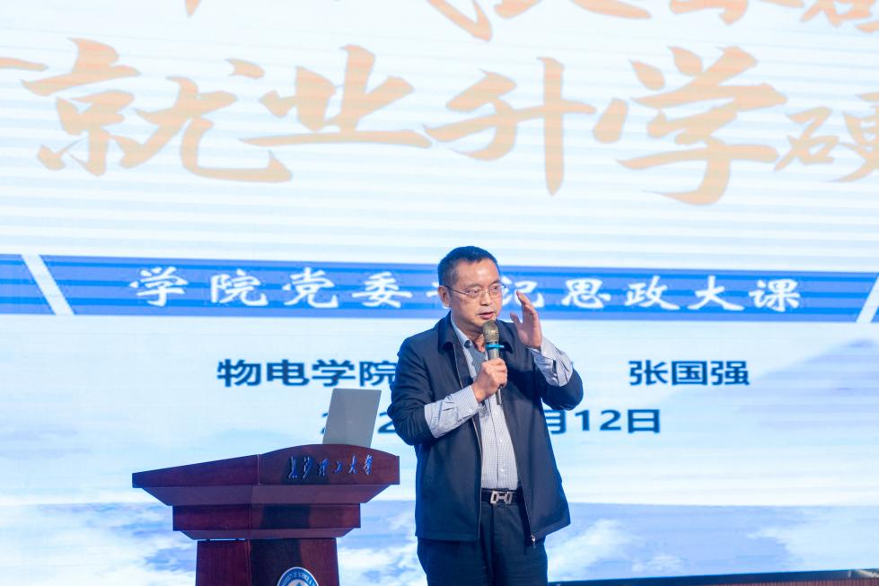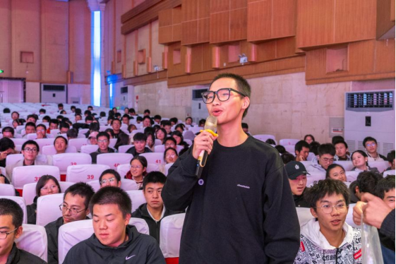 随后,张国强以《解锁四年成长密码,get就业升学硬核底气!》为题给学子上思政课。他拆解贯穿四年的“成长密码”,通过解读各专业核心内涵与发展前景,助力同学们明确就业方向,将专业优势转化为未来发展的“硬核资本”;以素质培养为导向分享科学学习方法,帮助同学们通过系统学习把握专业核心;结合竞赛实践赋能路径,指导大家激活“潜在优势”、锻造“显性竞争力”,为精准发力学业与职业规划筑牢根基。