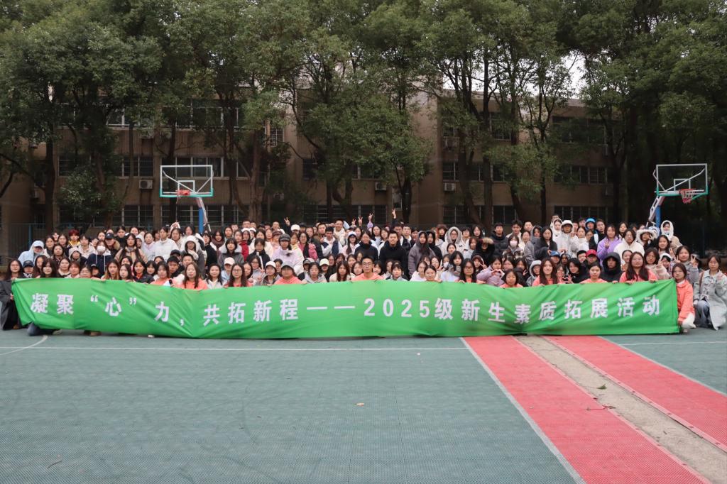 为加强新生集体融入感,增进团队凝聚力,11月18日下午,文新学院于金盆岭校区东苑篮球场开展以“凝聚‘心’力,共拓新程”为主题的2025级本科新生素质拓展活动,新生辅导员李心怡与全体2025级本科新生参与活动。
