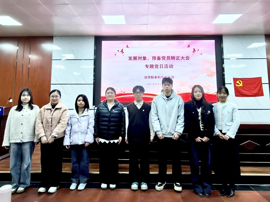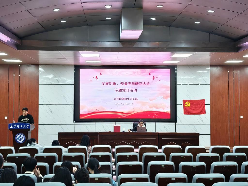 12月10日晚,法学院本科生党支部在金盆岭校区四教报告厅召开党员发展和转正大会。党支部全体党员和本期发展对象参会,党支部副书记王海川主持大会,党建辅导员兼本科生党支部书记孙佳乐参加。