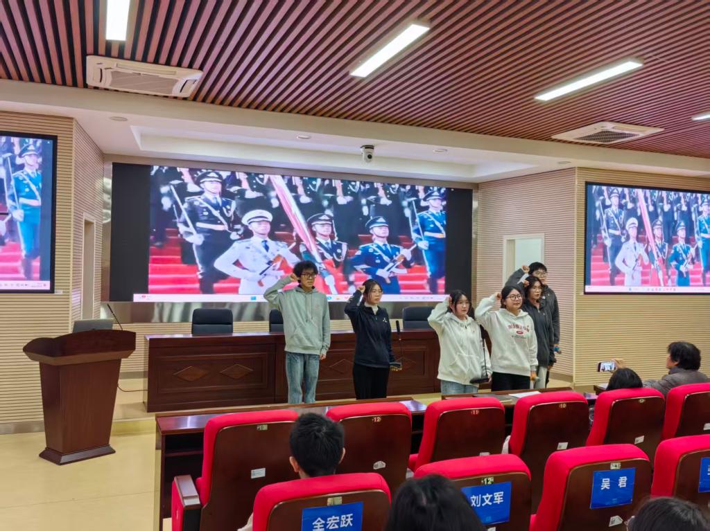 活动在庄严的国歌声中拉开帷幕。主持人带领师生回顾了从九一八事变到抗战胜利的艰苦历程,通过一幅幅历史画面,引导大家铭记那段牺牲与抗争交织的岁月,进一步坚定理想信念。