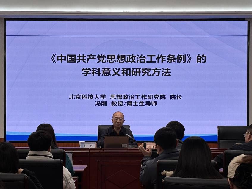 讲座中,冯刚教授紧扣《中国共产党思想政治工作条例》(以下简称《条例》)这一主题,围绕其出台背景、核心内涵、重要价值和研究路径等方面进行了深入阐释。他指出,中共中央印发的《条例》既是对思想政治工作的规范性要求,也是对中国共产党思想政治工作规律的系统总结,不仅对思想政治工作实践具有重要指导意义,也为思想政治教育学科建设与发展指明了方向。