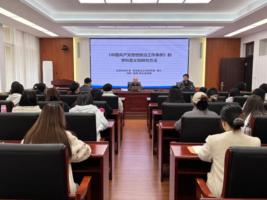 3月25日上午,北京科技大学思想政治工作研究院院长、博士生导师冯刚教授莅临马克思主义学院讲学。在云塘校区文科楼B501会议室,冯刚教授作了题为“《中国共产党思想政治工作条例》的学科意义和研究方法”的专题学术报告。讲座由学院院长张明海主持,学院师生及湖南科技学院、湖南信息学院教师代表参加了本次讲座。