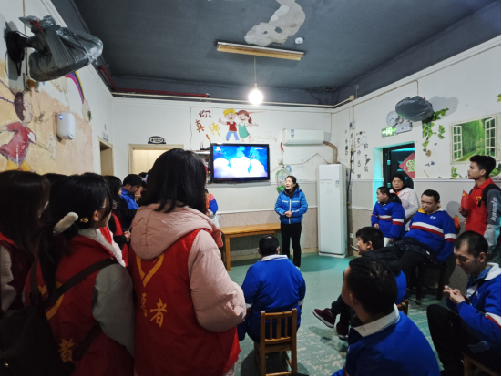 暖心陪伴环节,同学们来到社区特殊群体服务中心,用最真诚的方式传递关爱。大家围坐成圈,轻声交流、耐心倾听,伴着熟悉的旋律合唱经典歌曲,现场氛围温馨而治愈。扎根基层多年的照料老师,分享了自己坚守岗位、守护特殊群体的故事,朴实的话语里满是责任与热爱:“陪伴不需要复杂的形式,真心靠近就是最好的温暖。”同学们在陪伴中学会共情,在倾听中懂得坚守,更深刻体会到志愿服务的价值与意义。