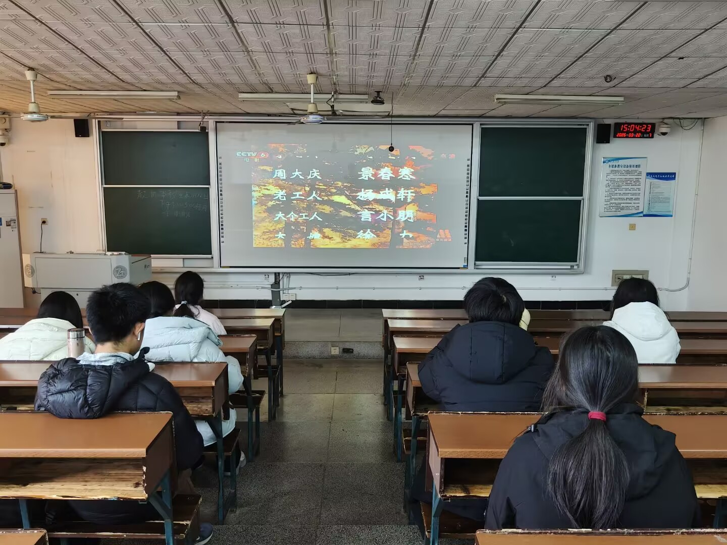 3月15日,教室里放映着1965年的《雷锋》。银幕上,雷锋同志朴素而光辉的形象深入人心:那只缝缝补补的节约箱、雨夜护送老大娘回家的背影、义务劳动中挥汗如雨的姿态……一幕幕画面无声地传递着信仰与情怀,让在场学子在光影交错中了解榜样背后的信仰与情怀,感悟榜样的力量。
