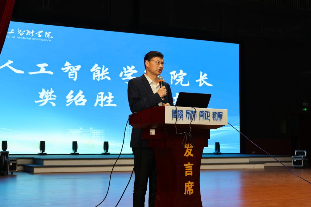 会上,樊绍胜结合当前人工智能行业发展趋势,勉励全体同学夯实专业基础知识,拓宽跨学科视野,主动拥抱AI时代,在专业学习中深耕细研、锐意进取。