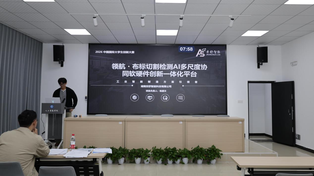 为引导学生融合专业所学与社会实践,锤炼创新创业能力,4月21日,人工智能学院在A201会议室举办2026年中国国际大学生创新大赛院赛,共有5支队伍通过初审进入答辩环节。