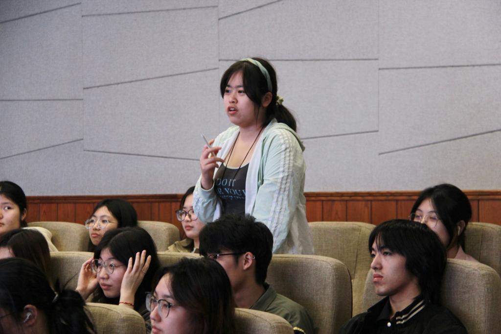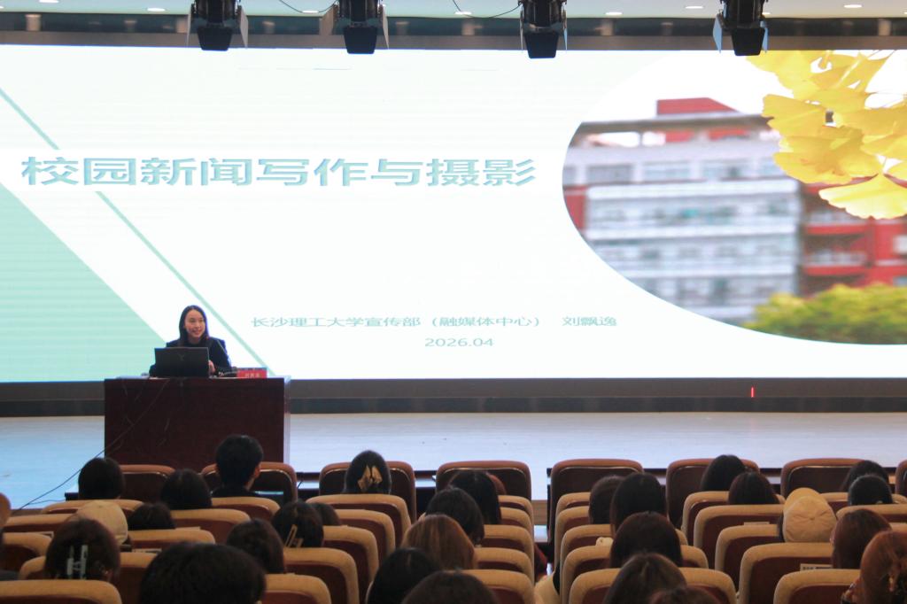 刘飘逸以《校园新闻写作与摄影》为题进行专题授课。课程以新闻基本要素为主线,结合实践案例,围绕新闻稿件撰写、摄影规范与技巧以及常见写作误区等内容展开。在互动环节,刘飘逸与同学们就新闻稿撰写规范、拍摄工具使用等问题进行了深入交流。