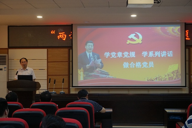 6月7日下午, 由数统学院、计通学院联合举办的“两学一做”专题报告在理科楼B-311学术报告厅举行,校党委委员、副校长黄立宏作了题为“学党章党规、学系列讲话、做合格党员”的专题党课。计通学院党委书记方琼主持,两个学院教职工党员参加。