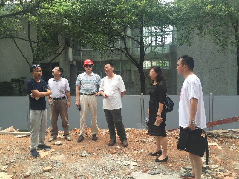 7月25日和8月14日,校常务副校长洪源渤、副校长谈传生在校友合作处、后勤与基建处负责人的陪同下,对校友中心的施工进度和质量进行了视察,并对项目的改造方案和具体做法召开协调会,给予大力的支持和明确的指导。