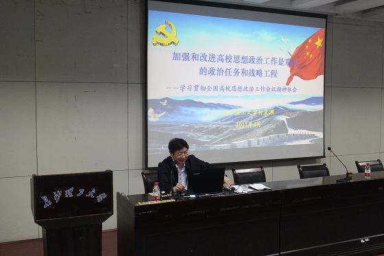 付宏渊从“深刻认识新形势下加强和改进高校思想政治工作现实紧迫性,紧紧抓住加强和改进高校思想政治工作的重点任务,以党建工作为统领,抓实高校思想政治工作,推进‘双一流’建设”等三个方面深入畅谈自己学习全国高校思想政治工作会议精神的体会。通过回顾2016年学校主要工作和取得的可喜的成绩,指出还存在着一些亟待解决的新问题。他说,要按照习近平总书记提出的“面对新形势新任务,高校思想政治工作只能加强不能削弱,只能前进不能停滞,只能积极作为不能被动应付”的要求,进一步加强和改进学校思想政治工作。