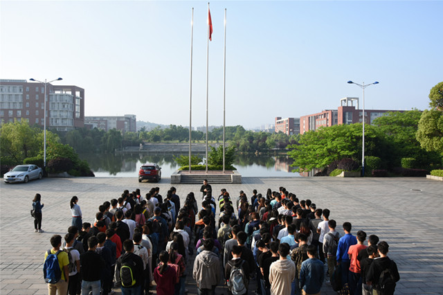 5月9日清晨7点,材料学院学生在升国旗仪式后举行了习近平总书记在中国政法大学讲话精神的学习活动,院党委书记张国强作主题报告,辅导员唐青主持,学院200余名学生参加学习。