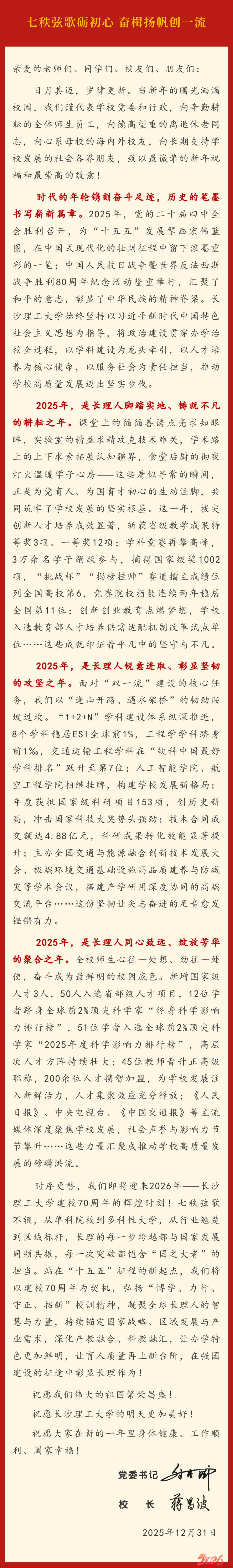 七秩弦歌砺初心 奋楫扬帆创一流——长沙理工大学2026年新年献词