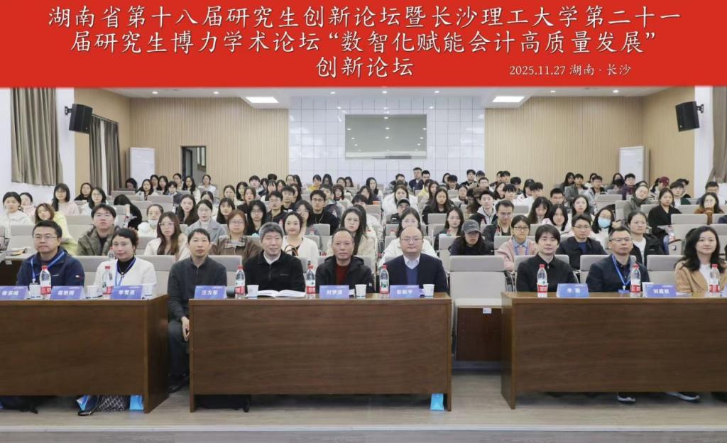 11月27日,湖南省第十八届研究生创新论坛暨我校第二十一届研究生博力学术论坛“数智化赋能会计高质量发展”创新论坛在金盆岭校区举行。本次论坛由湖南省教育厅主办,我校承办,吸引了来自国内多所高校的专家学者及本校师生近200人参加。