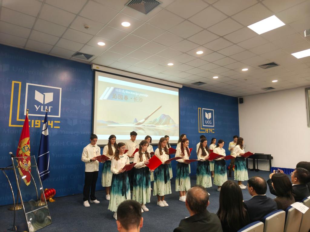 中国驻黑山共和国大使陈绪峰阁下在致辞中充分肯定了黑山大学孔子学院十年来在中文教学与文化交流方面所取得的显著成就,强调使馆将继续支持孔子学院工作,期待更多黑山青年通过学习中文了解中国文化,成为推动中黑友好的民间使者。