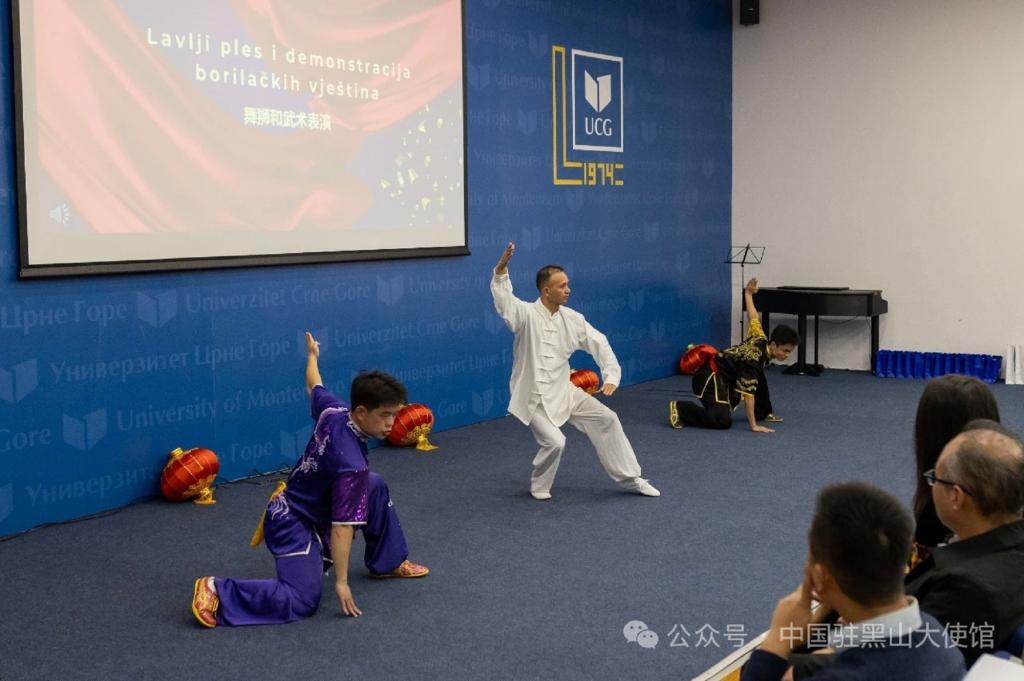 黑山大学孔子学院十周年庆典晚会在黑山大学行政楼礼堂举行。该礼堂是十年前孔院揭牌的历史现场,意义深远。黑山共和国文化和媒体部长杜尚·武约维奇(Dušan Vujović)、黑山大学校长弗拉基米尔·博佐维奇教授(Vladimir Božović)、中国驻黑山共和国大使陈绪峰、副校长张军辉及孔子学院师生百余人齐聚一堂。