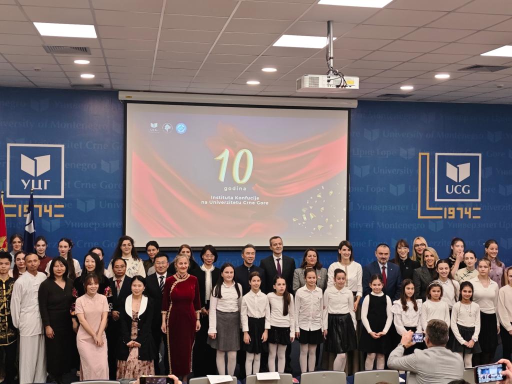庆典现场还播放了“黑大孔院十周年纪录片”,再现孔子学院十年来取得的丰硕成果。尤其在十周年之际,优秀学员柏爱莉(Bogdanović Alisa)荣获第十八届“汉语桥”世界中学生中文比赛全球总冠军,实现黑山历史性突破,成为十年办学的标志性成果。