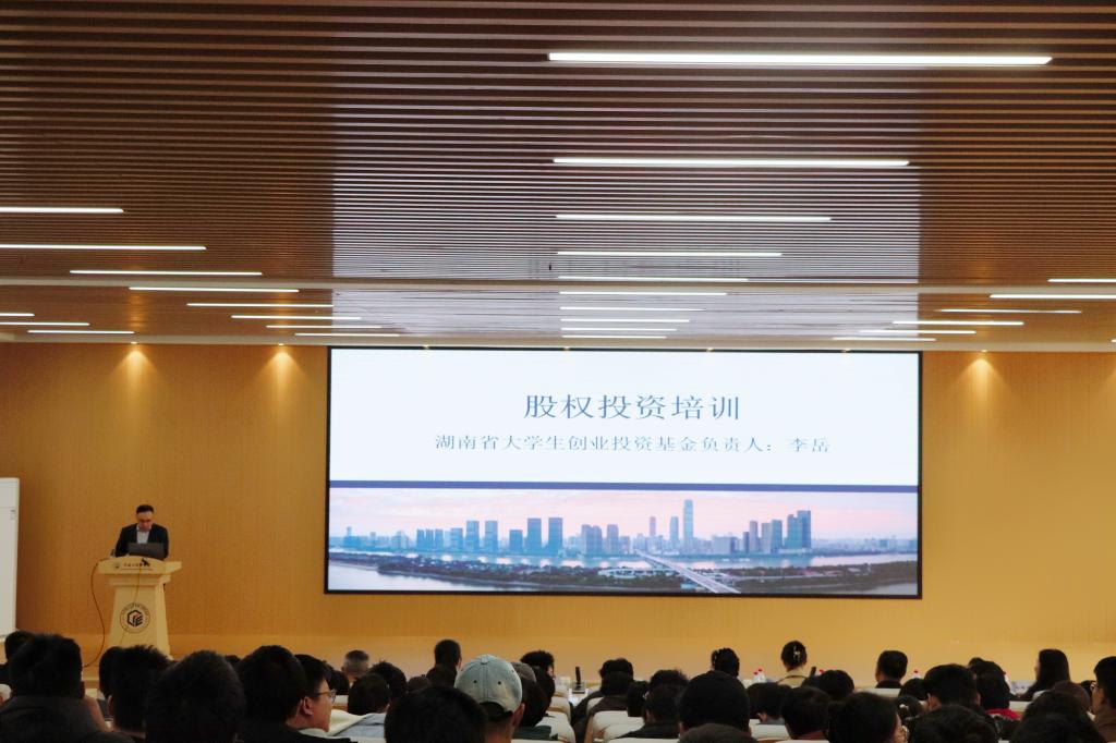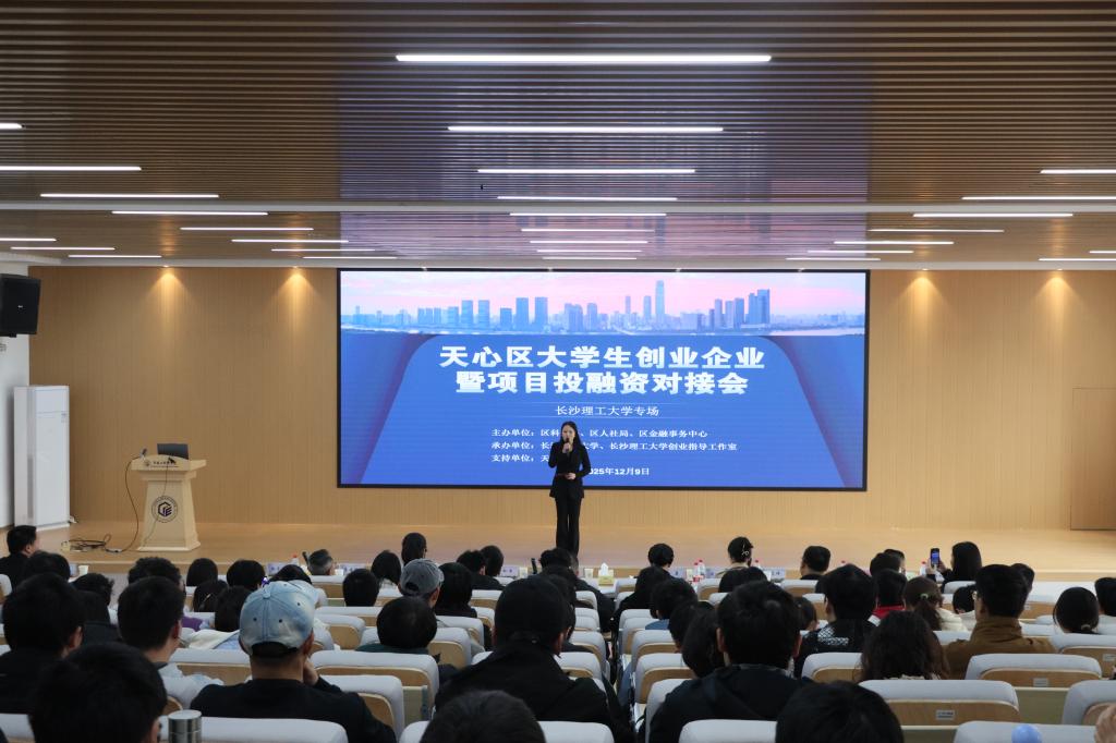 会上,李岳为创业学子开展股权投资专题培训。他结合自身投资经验,从投资人视角剖析融资关键,指导学生提升项目策划与商业表达能力。在项目路演环节,三支来自我校的优秀创业团队依次进行创业项目展示。“冰峰筑路”专注于高原冻土区道路工程技术,展现了我校在交通领域的科研转化实力;“湘桥智检”研发了基于人工智能的桥梁智慧检测系统,展现了团队在智能建造与维护方面的创新能力;“智荐品牌”致力于提供AI驱动的品牌全链路优化服务,展示了我校学子在数字经济领域的创业活力。最后,天心区相关部门负责人系统介绍了省、市、区三级支持大学生创业的各类扶持政策,为我校学生创业提供了清晰的政策指引与资源对接渠道。