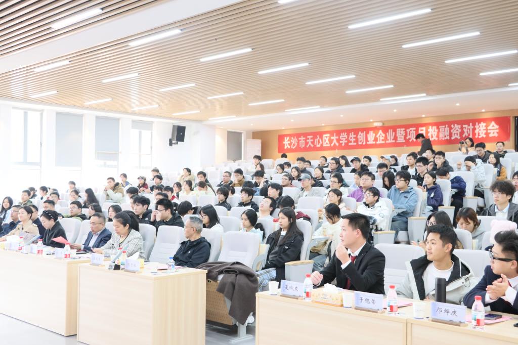 为深入贯彻落实省委、省政府关于支持大学生创业“七个一”举措,12月9日下午,长沙市天心区科技局、区人社局、区金融事务中心与我校大学生创业指导工作室联合举办的大学生创业项目投融资对接会在云塘校区举行。湖南省大学生创业投资基金负责人、湖南麓山科技投资有限公司总经理李岳,天心区金融事务中心党组书记、主任周雅娴,副主任向姣姣,区就业服务中心副主任龚建国,我校卓越工程师学院党委书记杨晨,交通学院副院长(主持工作)吕松涛、党委副书记任志祥,创业就业指导处李小军及师生代表等150余人参加活动。