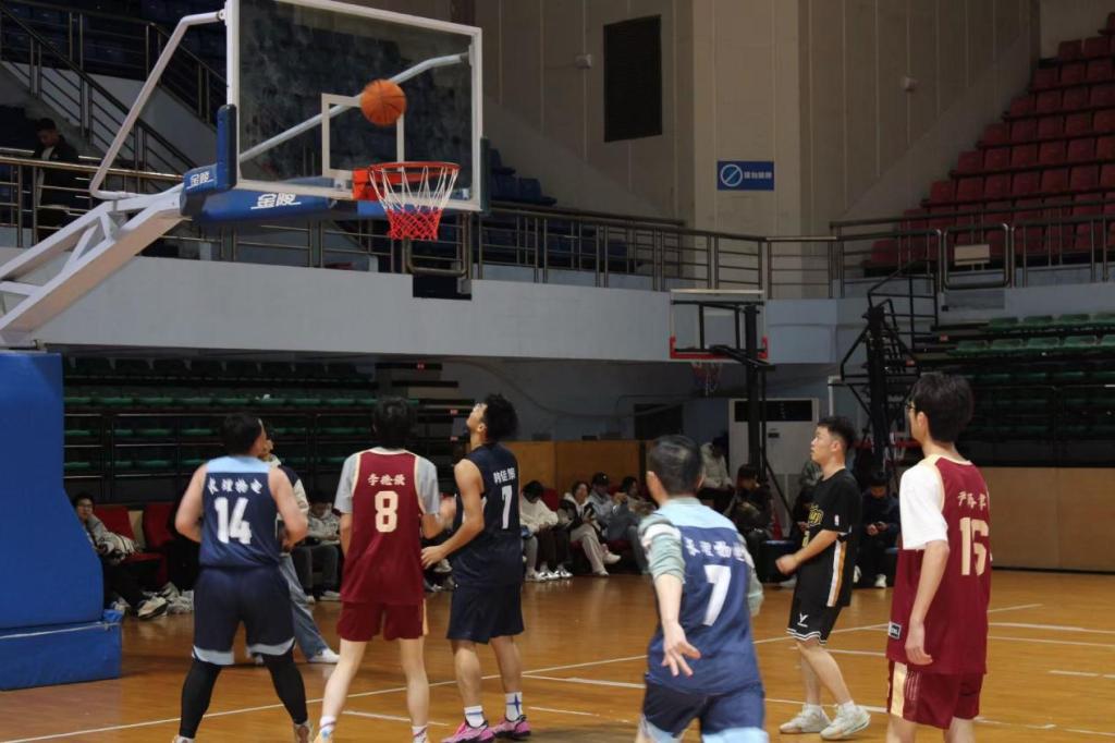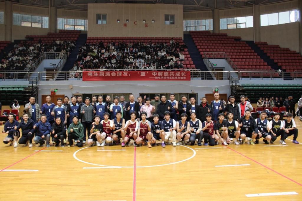 友谊赛现场,物电学院教职篮球队与“迎新杯”学生代表同场竞技。比赛中,师生双方迅速进入状态,传球配合默契,突破进攻果断,投篮表现精彩,赛场氛围热烈有序。掌声与助威声交织,充分展现了物电学院师生团结协作、积极进取、昂扬向上的精神风貌。