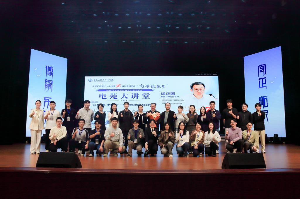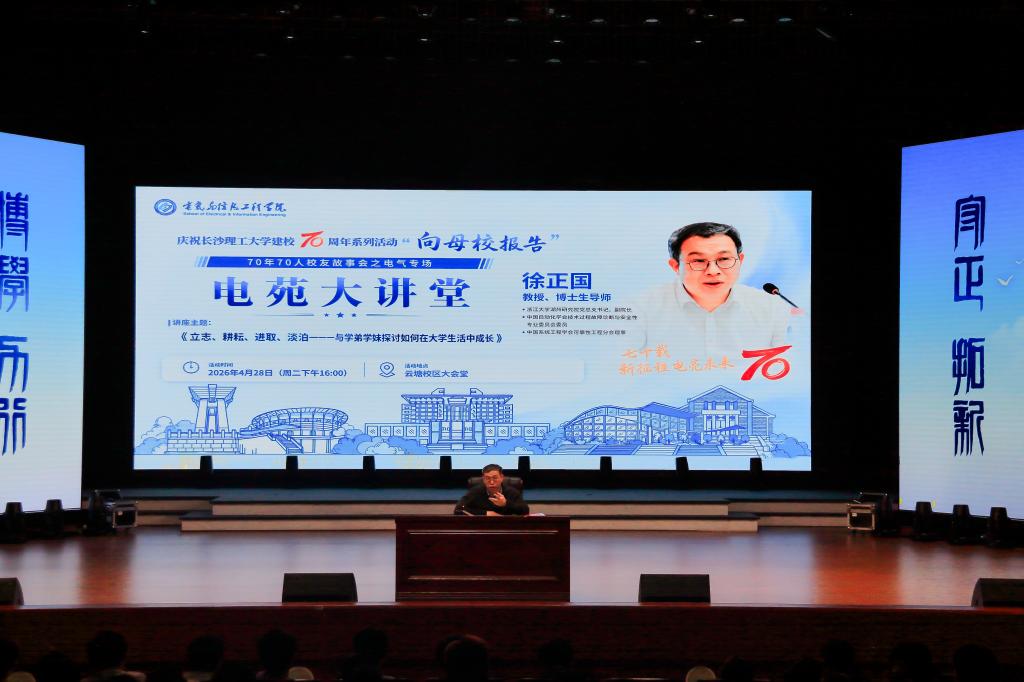 4月28日下午,云塘校区大会堂内掌声不断。作为庆祝建校70周年系列活动之一,“向母校报告——70年70人校友故事会”电气专场在此举行。电气专业1998级校友、浙江大学湖州研究院党总支书记兼副院长徐正国应邀回到母校,做客“电苑大讲堂”,与学弟学妹分享成长心得。学院党委书记丁丹出席并致辞,党委副书记周巍、学校校庆工作专班成员兼城南学院党委副书记陶双、校友中心与学工部相关工作人员及全体辅导员出席活动,学院1000余名研究生、本科生代表到场聆听。