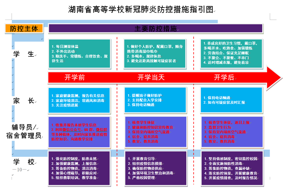 日前,为做好全省各级各类学校开学前和开学后新冠肺炎疫情防控工作,保障广大师生员工生命安全和身体健康,湖南省教育厅制定了幼儿园、小学、中学、高校四个新冠肺炎疫情防控工作指南。其中,《湖南省高等学校新冠肺炎疫情防控工作指南》内容如下。