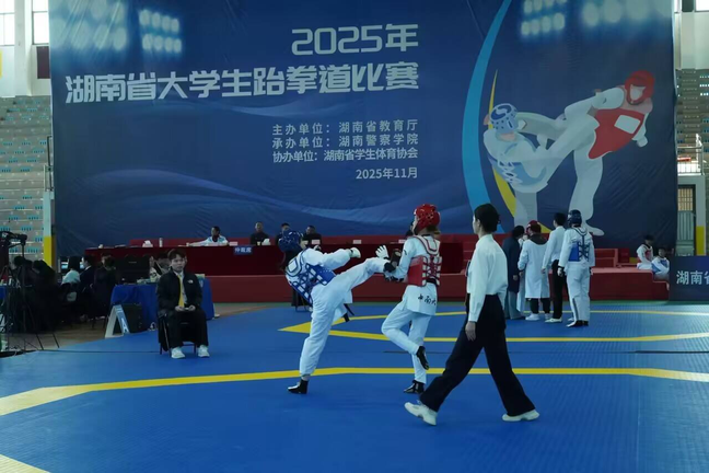 12月3日,2025年湖南省大学生跆拳道比赛在湖南警察学院闭幕。本次比赛汇聚了全省多所高校的跆拳道选手,竞争激烈、精彩纷呈。航空工程学院地信2501班麦小晴、地信2301班黎常乐凭借扎实的技术、顽强的斗志和良好的体育风尚,在比赛中奋勇拼搏,斩获多项佳绩。在为期一周的赛程中,麦小晴荣获女子品势金牌、女子竞技46公斤... 【2025-12-12】