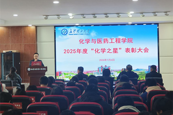 1月6日下午,化学与医药工程学院在云塘校区工科三号楼B319学术报告厅举行2025年度“化学之星”表彰大会。学院领导、教师代表、辅导员、全体获奖学生及学生代表共百余人参会。学院党委书记宋刘斌在致辞中向获得表彰的25名“化学之星”表示热烈祝贺。他提到,“化学之星”评选是学院落实立德树人根本任务、构建“三全育人... 【2026-01-06】