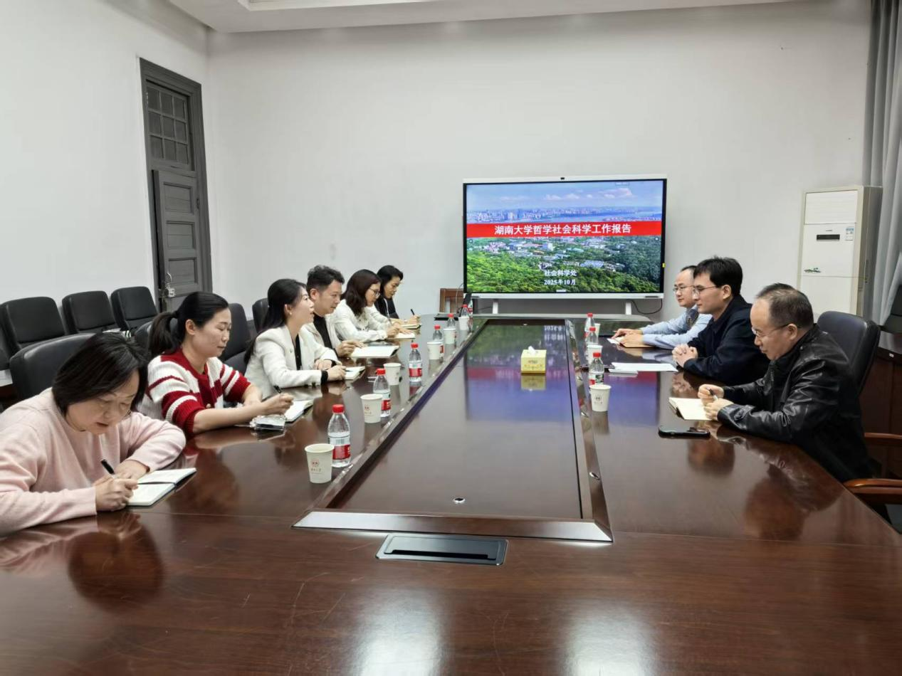 为进一步拓展我校人文社科科研发展思路,提升科研管理水平,10月29日,社科处处长刘坚率处室全体人员到湖南大学调研学习。湖南大学社会科学处处长丁三伏,副处长艾洪山、周建军参与了本次调研活动。丁三伏简要介绍了湖南大学的办学历史、学科布局及哲学社科领域发展概况,从当前社会科学研究面临的形势和任务、湖南大学... 【2025-10-30】