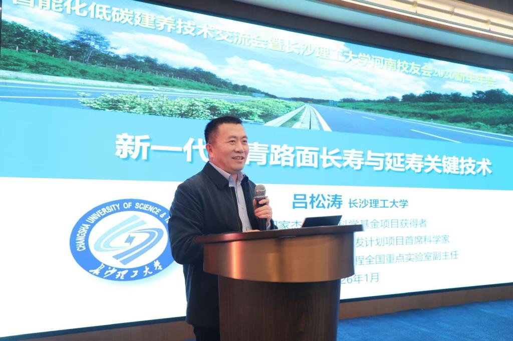 河南校友会会长张良奇主持了智能化低碳建养技术交流会。朱理平致开幕辞,我校交通学院副院长吕松涛作题为《新一代沥青路面长寿与延寿关键技术》的学术报告,河南校友会执行会长、金途科技集团董事长赵文广校友分享《基于生成式人工智能的人机协同评价模式初探》,德通智能科技副总经理黄昆鹏介绍了“德通路面再生列车暨工业互联网平台”,与会人员参观了万里交科集团产业园。此次交流会聚焦行业技术前沿,搭建了高水平的专业对接平台,有效促进了校友之间、校友与母校之间的产学研协同与资源联动。