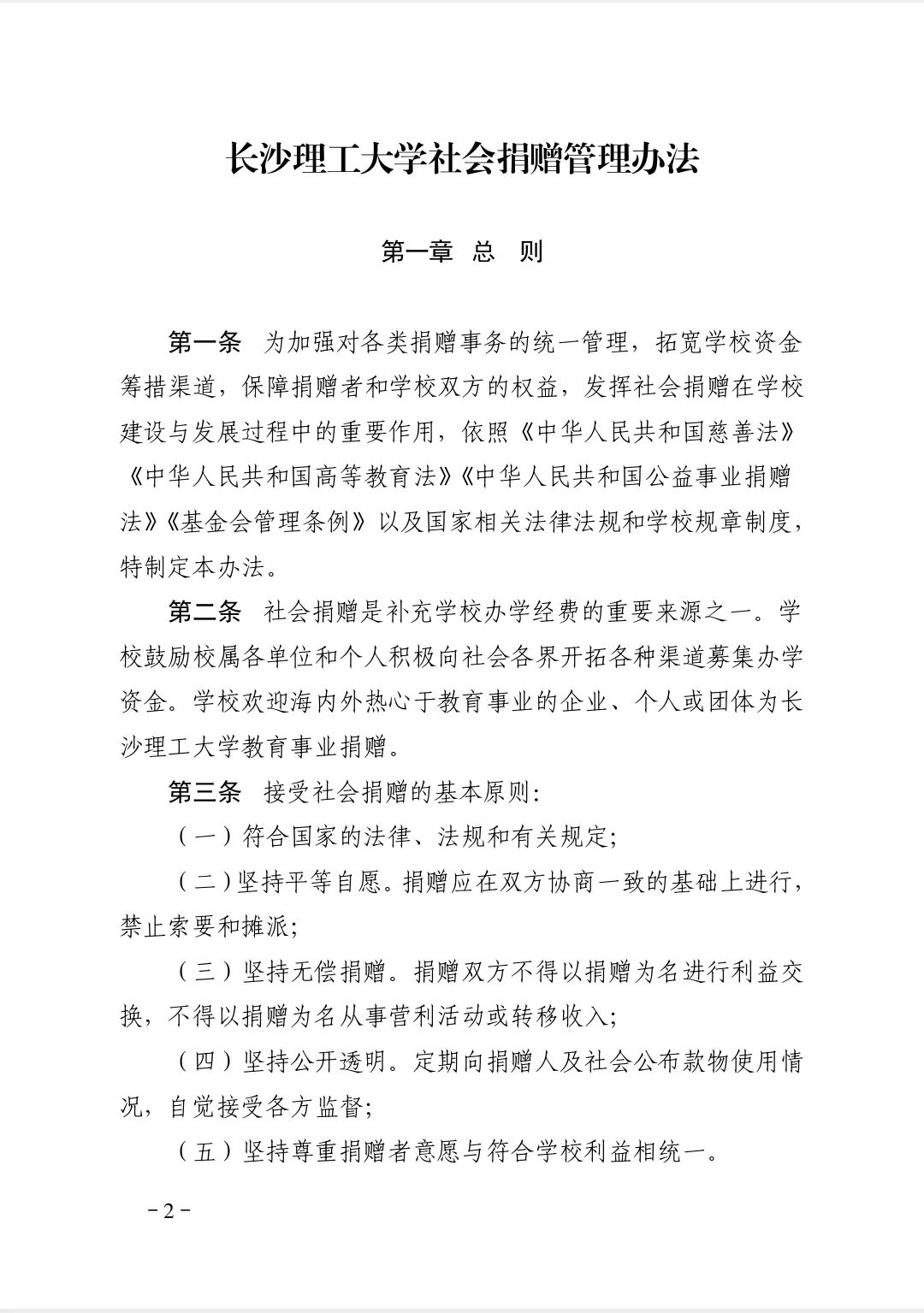 社会各界对长沙理工大学及校属各单位的捐赠,受赠人只能是湖南省长沙理工大学教育基金会,任何机构与个人不得擅自以长沙理工大学名义在社会上募集或接受捐赠。