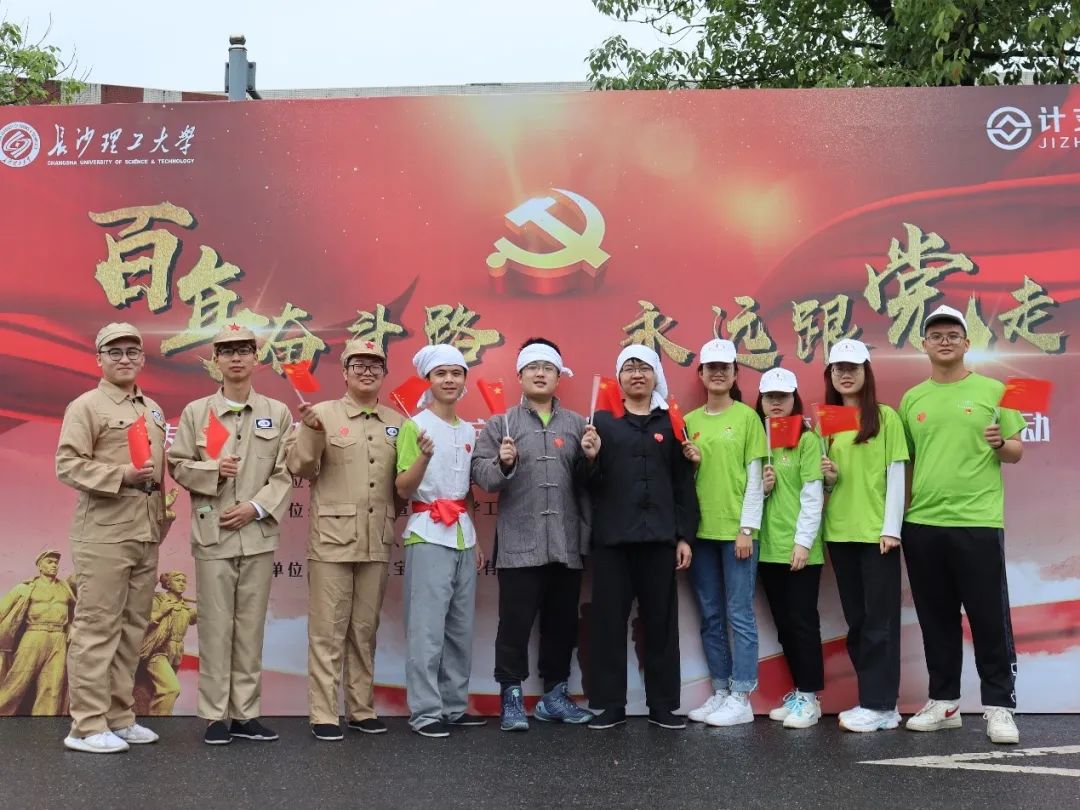 湖南高速集团校友队11级交通工程专业的邹智敏校友一边挥舞着小红旗一边说:“刚刚在起点合照的时候我就在想这个主题太好了,中国共产党的诞生在我们民族危亡之际给中国带来了曙光,这样的活动十分有教育意义。”