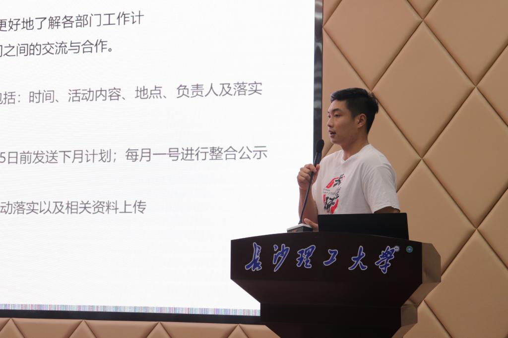 随后,办公室代表赵逸波、组织部代表曹⽂彪、宣传部代表⻩旭东、学术部代表朱祎晨、实践部代表彭柯、⽂艺部代表朱元珏、体育部代表周欣怡、权益发展部代表余晨欢、新媒体中⼼代表何欢分别对所在部⻔的⽇常⼯作内容、与其他部⻔的协作内容及团学组织考核标准进⾏了详细介绍。