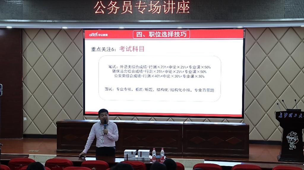 在讲座现场,专家直击要点,清楚介绍各种公职考试的政策、报名时间、考情和考试内容,重点讲解了同学们比较关注的备考技巧、备考规划和福利待遇,在对比分析各公职特点的基础上,传授选岗技巧。