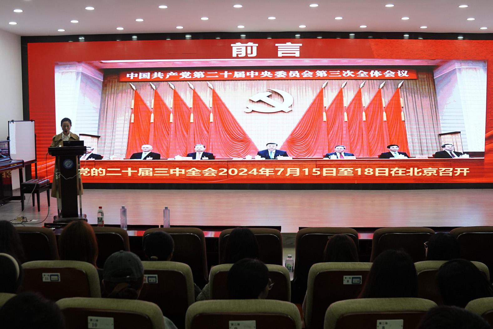 10月16日下午,设计艺术学院在建筑艺术楼A101召开了2025级研究生新生第一堂党课。本次党课以“学习党的二十届三中全会精神,引领学生担当作为”为主题,由学院党委书记郭剑主讲,2025级研究生符语洋主持,研究生辅导员李慧及2025级全体研究生参加了此次学习。