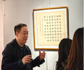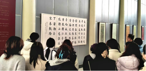 3月23日,长沙理工大学设计艺术学院数字媒体艺术创新班师生一行走进湖南省文化馆,开展了一场别开生面的现场书法课教学活动。同学们在任课教师刘亚东老师带领下,参观了正在这里展出的“历代名人咏湖湘——守正·第五届全国百家楷书邀请展”,在翰墨书香中感悟湖湘文脉,汲取艺术养分。
