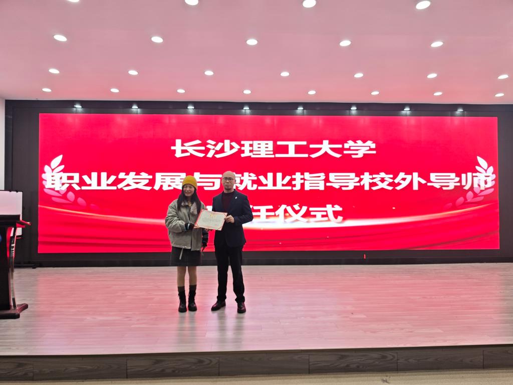 活动伊始,举行了简单而庄重的“长沙理工大学职业发展与就业指导校外导师”聘书颁发仪式。郭剑书记代表学院为汤政校友颁发聘书,对他长期以来关心支持学院发展、助力学子成长表示衷心感谢。郭剑在致辞中提到,汤政校友凭借丰富的行业经验和创业实践,为学院学子搭建了连接校园与职场的重要桥梁,希望以此次聘书颁发为契机,进一步深化校企合作,为学生职业发展提供更坚实的指导与保障。汤政校友表示,能获此殊荣倍感荣幸,未来将全力以赴履行校外导师职责,为学弟学妹们的职业成长保驾护航。