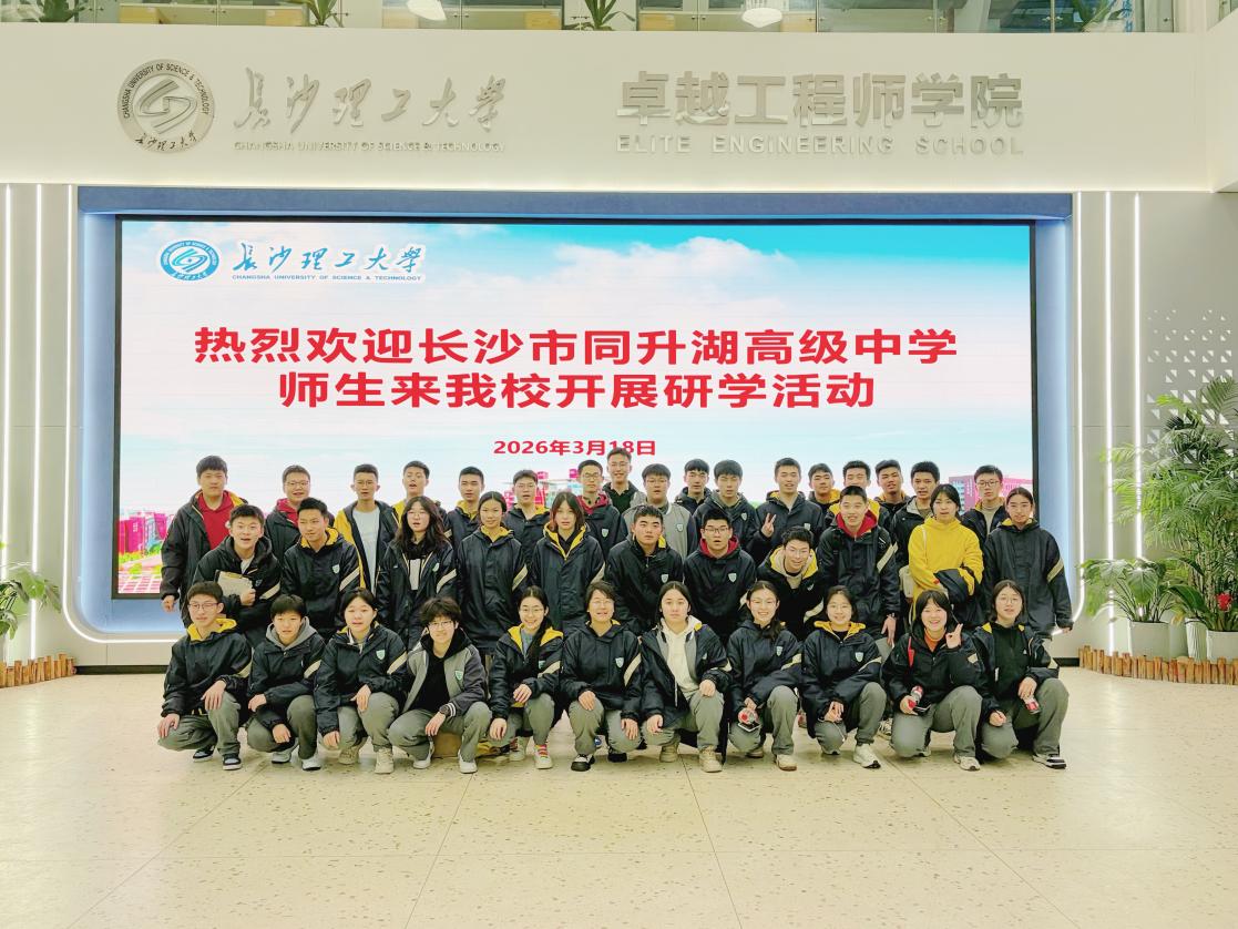 3月19日下午,长沙市同升湖高级中学师生在我校云塘校区开展研学交流活动。本次活动由数学与统计学院、卓越工程师学院、材料科学与工程学院联合举办,长沙市同升湖高级中学副校长蒋建文和宋沿德带领该校80余名师生参与活动。