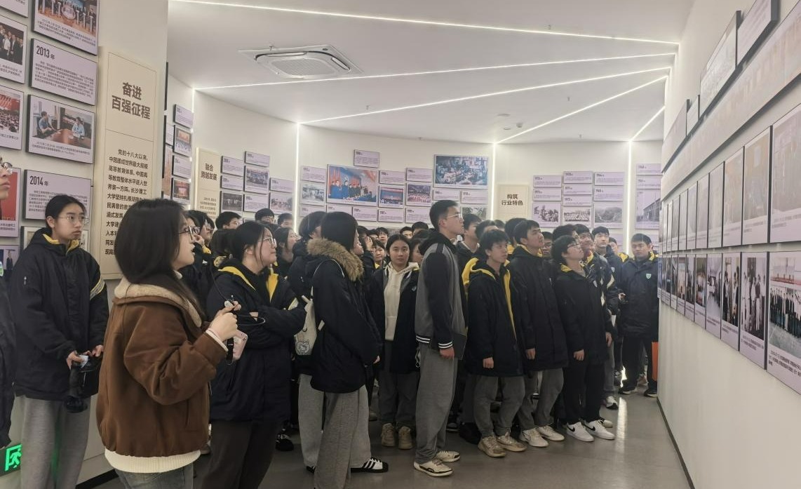 首站抵达“三全育人”教育基地,长沙市同升湖高级中学的师生们在参观中浸润,在研学中启航。讲解员从“国之大者”“材之茂者”“师之贤者”和“行之实者”四个部分向师生们详细介绍了学校的发展历程、教育教学、师资力量、科研实力、优秀校友等情况,师生们驻足观看了照片、实物、模型等,深刻体会到了长沙理工大学与时代同发展、与人民齐奋进,以及所取得的丰硕育人成果。讲解员鼓励同学们积极报考长沙理工大学,书写属于自己的青春华章。