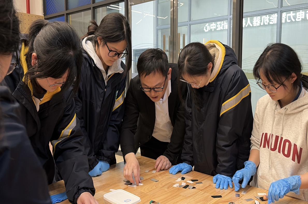 在材料与科学工程学院,同学们走进大学实验室,亲手操作记忆合金实验、自制镁电池,沉浸式体验材料科学的独特魅力。学院实验中心主任贺浩通过“记忆合金”与“镁空气电池”两大经典实验,将深奥的材料科学转化为触手可及的奇妙体验。当遇热恢复原状的合金引起阵阵惊呼,当同学们亲手制作的电池成功运作,科学的种子已在心中生根发芽。校外就业创业导师丁兰、志愿者张依婷全程护航,手把手指导操作,耐心答疑解惑。这场动手与动脑并重的实践,不仅拓宽了学生的学科视野,更通过高校资源的向下延伸,实现了中学与大学在拔尖创新人才培养上的同频共振。